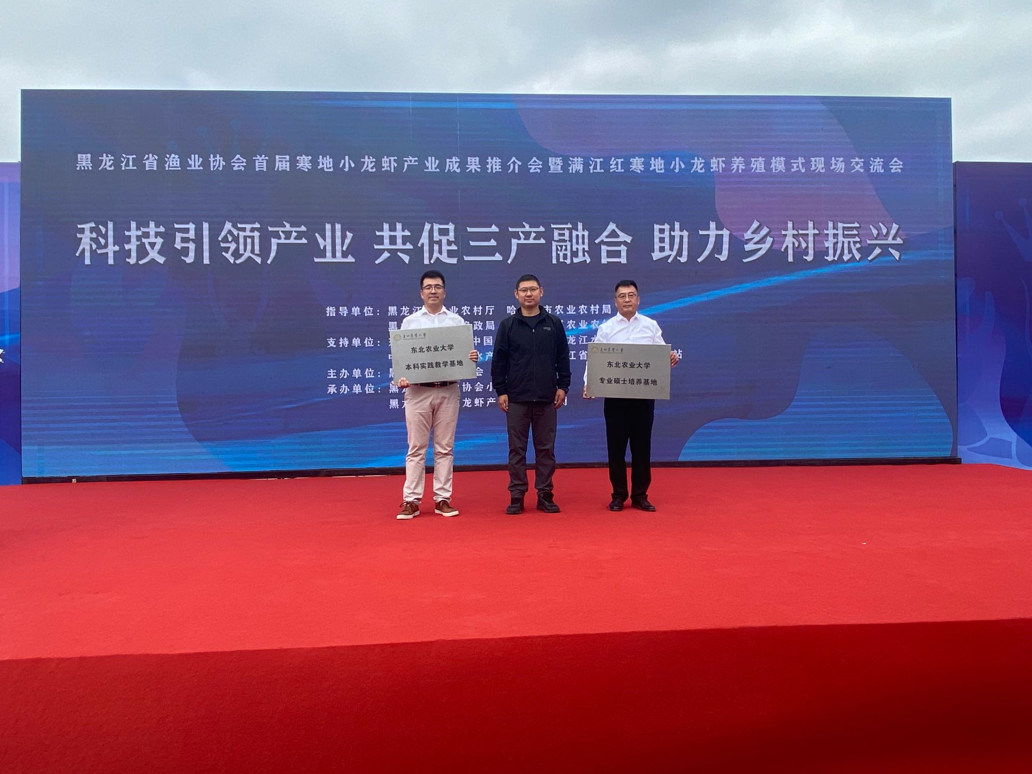 为推动龙江渔业快速发展,深入践行“大食物观”,以科技引领产业,共促农业三产融合,助力乡村振兴,9月6日上午,黑龙江省渔业协会首届寒地小龙虾产业成果推介会暨满江红寒地小龙虾养殖模式现场交流会在松北区对青山镇李家村举行。公司副董事长孙占峰、社会合作与成果转化中心(新农村发展研究院)党委书记王伟峰;公司党委书记徐光君、健康养殖研究院执行经理殷志明,水产养殖系主任管雪婷、教师陈伟兴参加会议。 会...