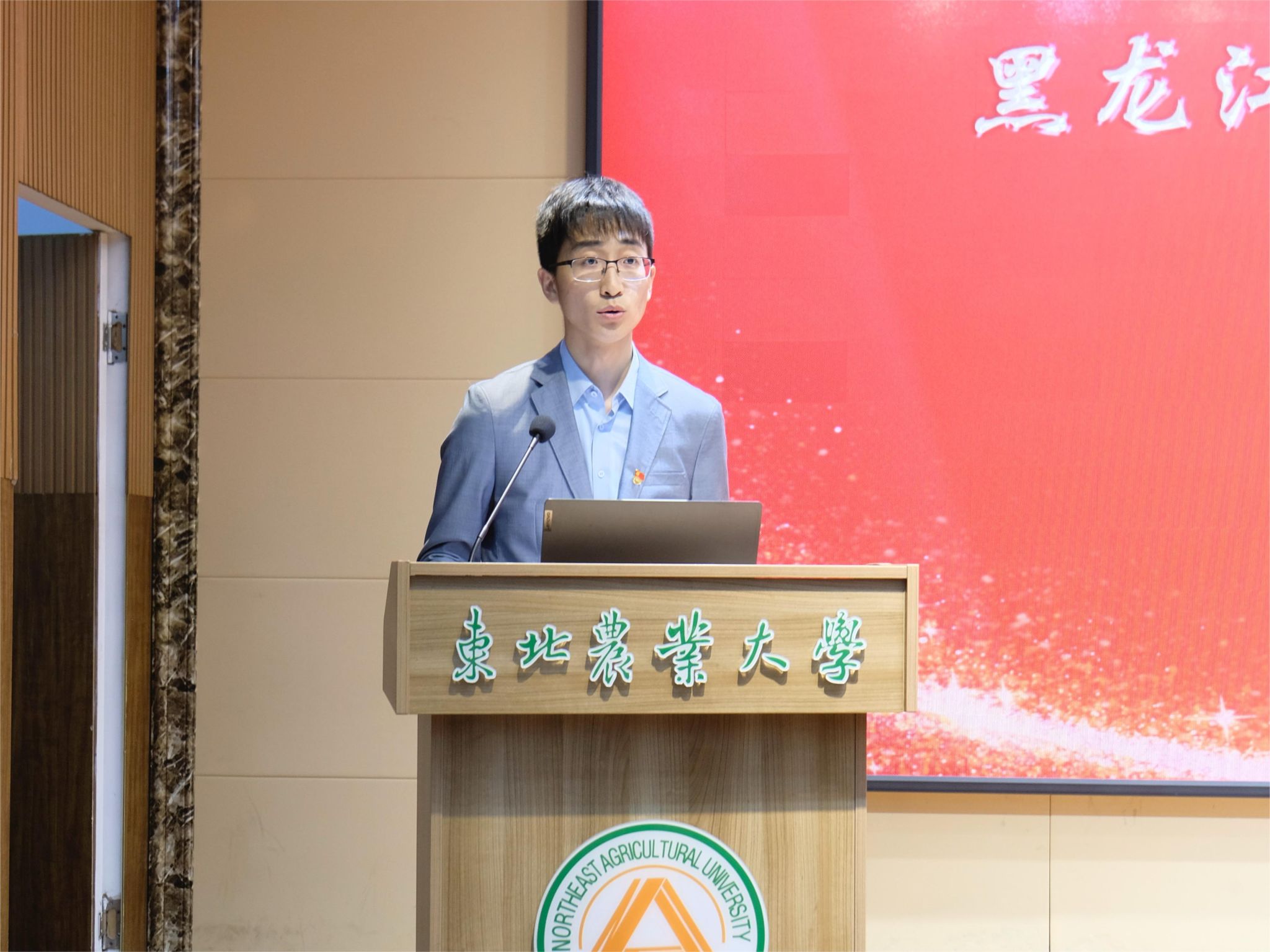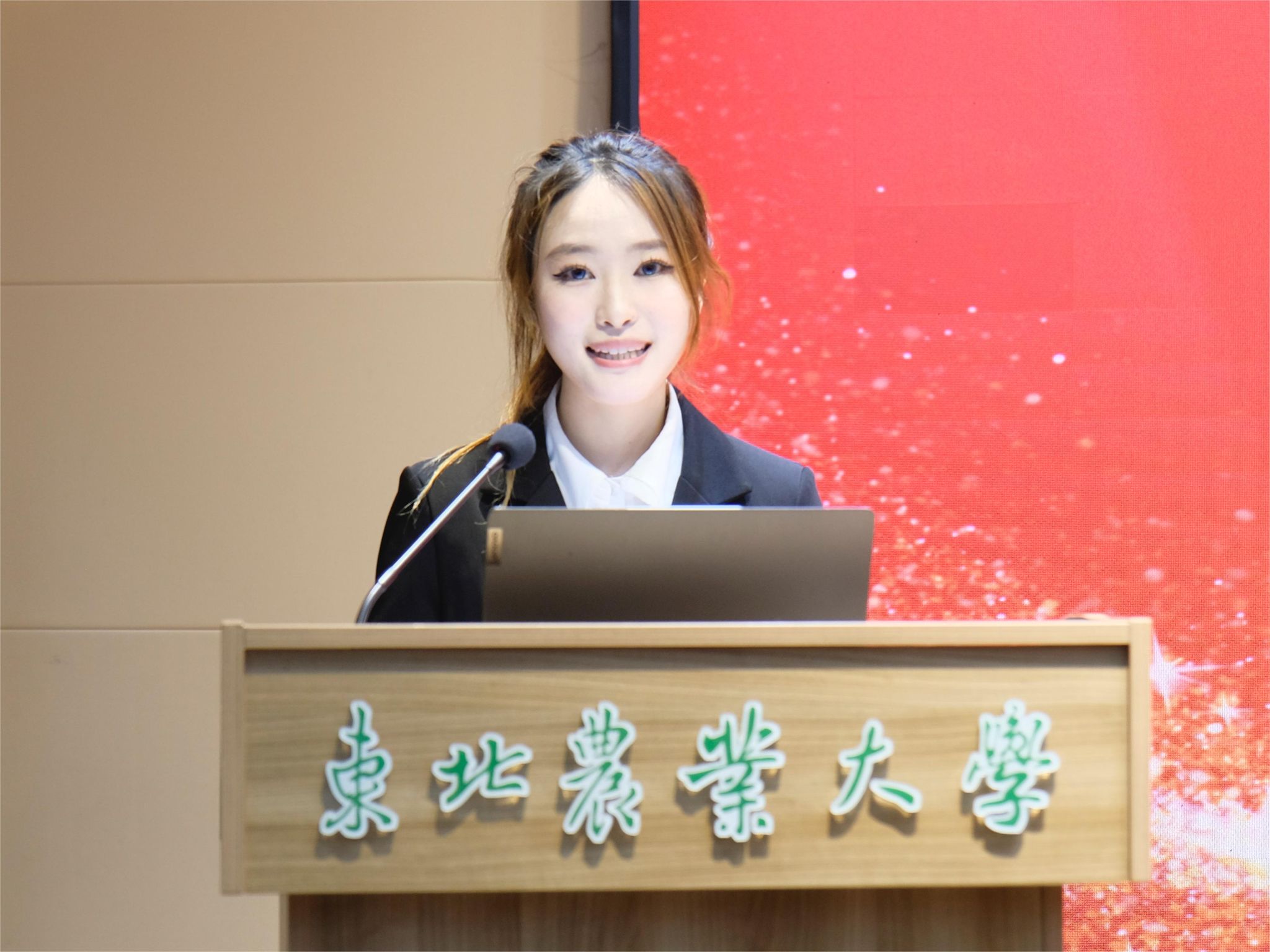 青年理论学习小组成员、动科2101班申宇进行发言。她讲到,作为一名农业高校涉农专业的员工,要紧跟时代步伐,顺应时代发展,以科学的态度对待科学、以真理的精神追求真理,厚植知农爱农情怀,练就强农兴农本领,通过学史明理、学史增信、学史崇德、学史力行,让红色基因、革命薪火代代传承。