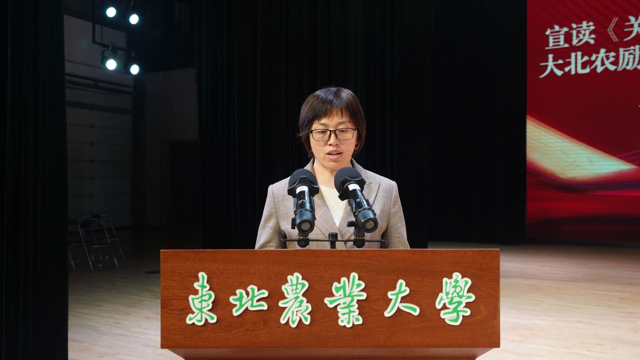 张慧宣读《关于表彰2023-2024学年度金龙鱼奖学金、大北农励志奖学金的决定》并为获奖员工代表颁奖