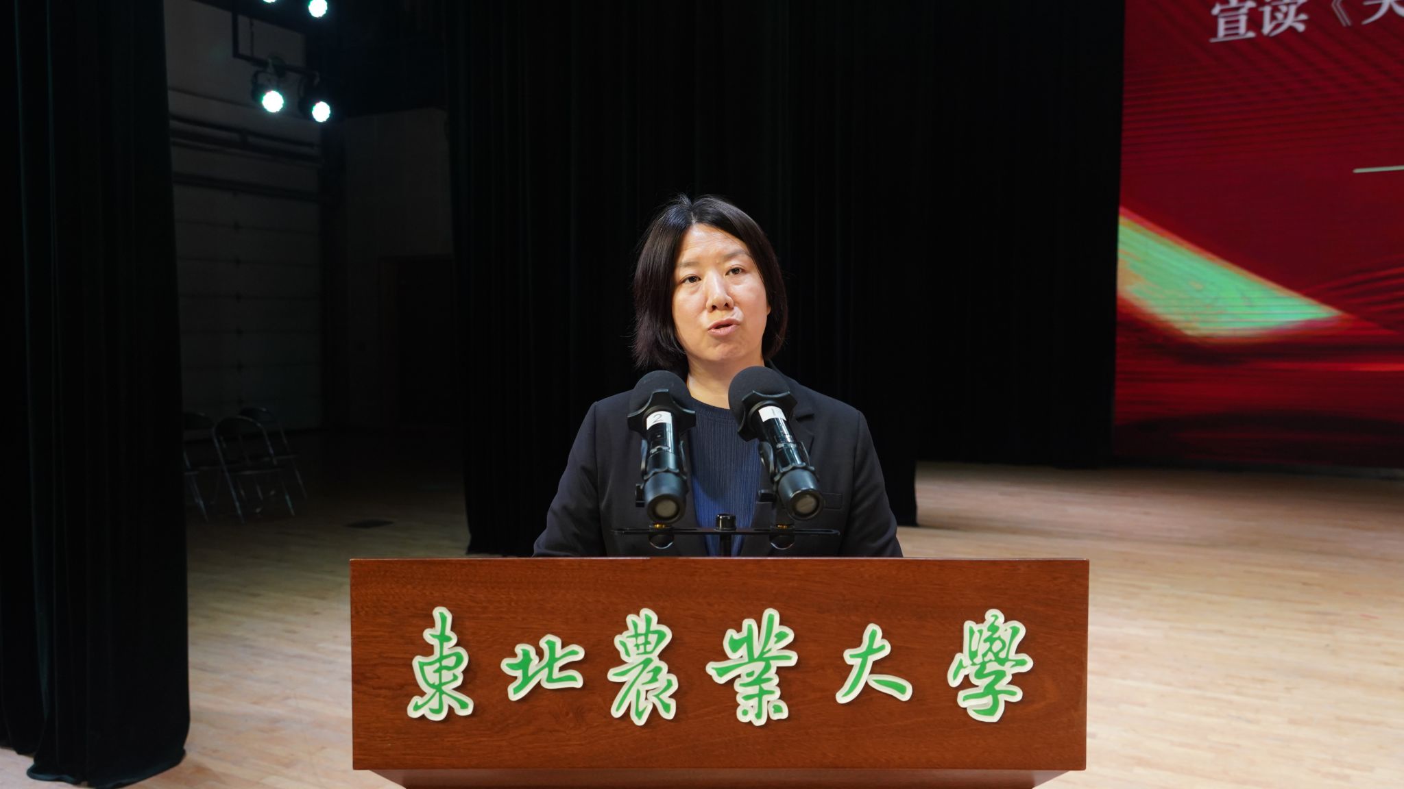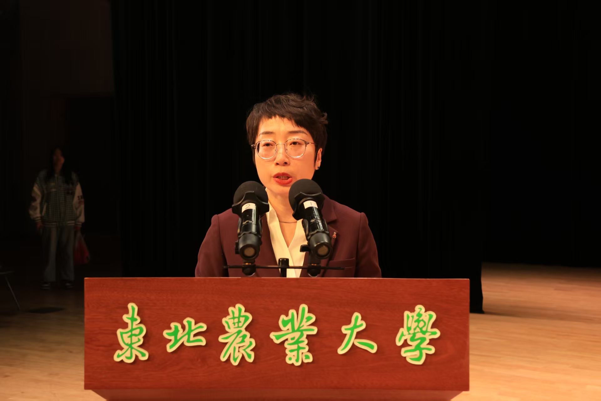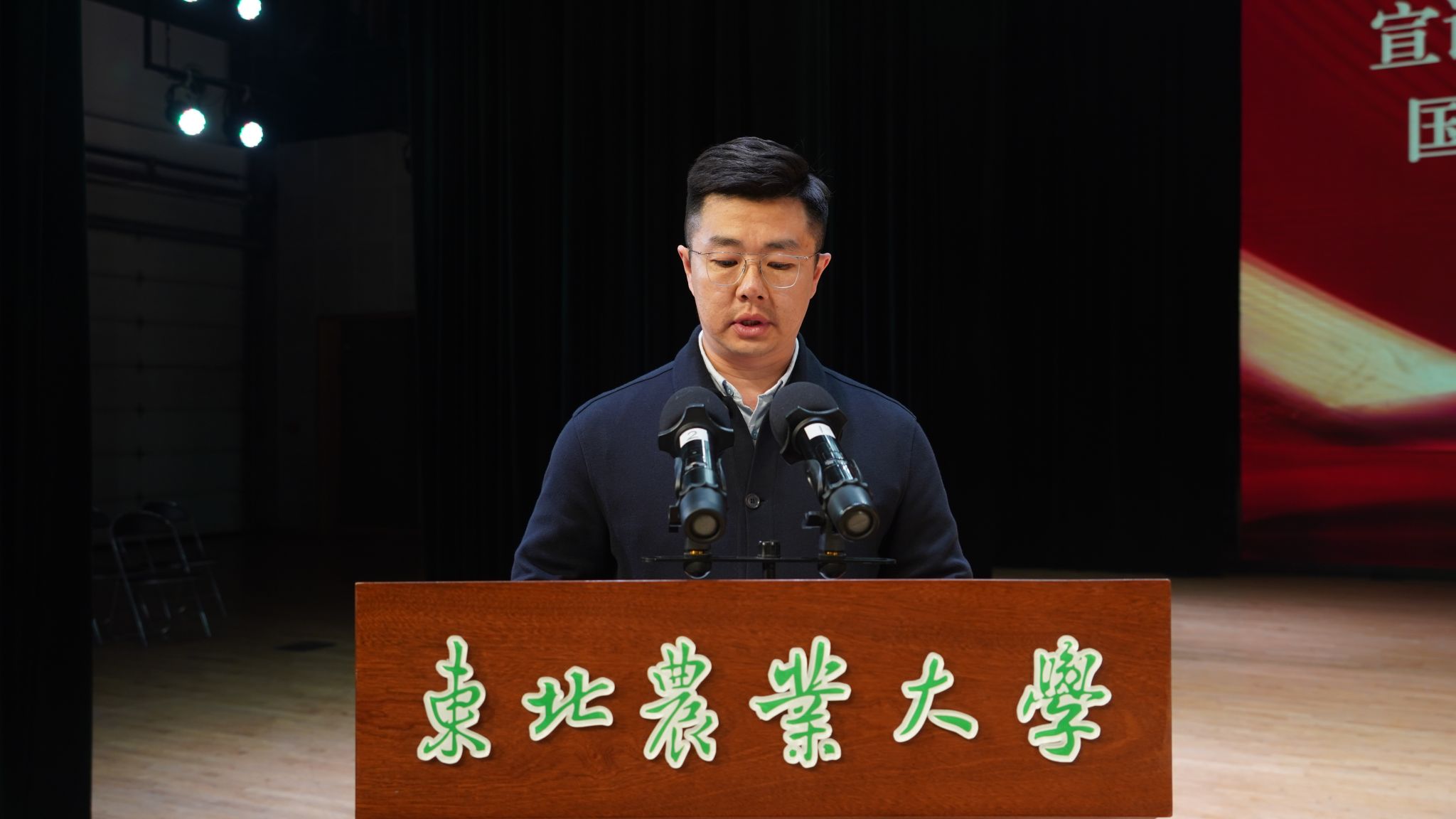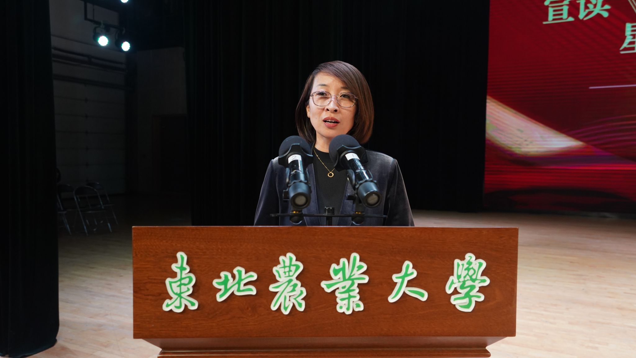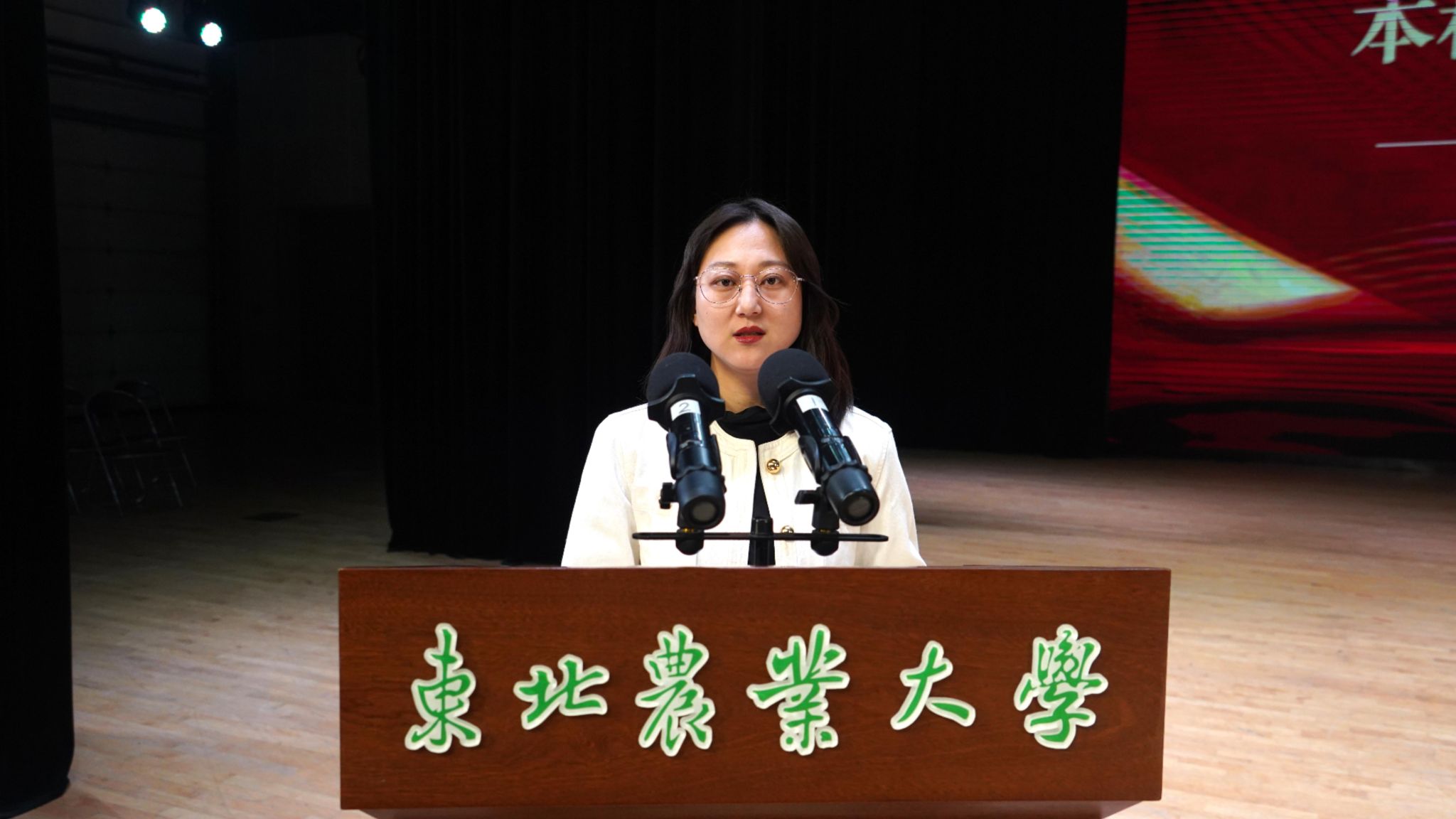 辅导员杨琳与员工代表以“传承畜牧精神 激扬青春力量”为题,为全体同学讲述许振英先生事迹,激励广大学子高举信仰火炬奋勇前行。