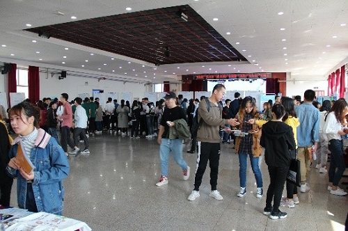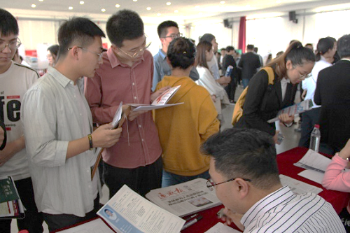 毕业生同学们手持简历,整装待发。他们穿梭于各个招聘企业之间,为寻找到自己心仪的工作奔走忙碌,现场气氛热烈浓厚。