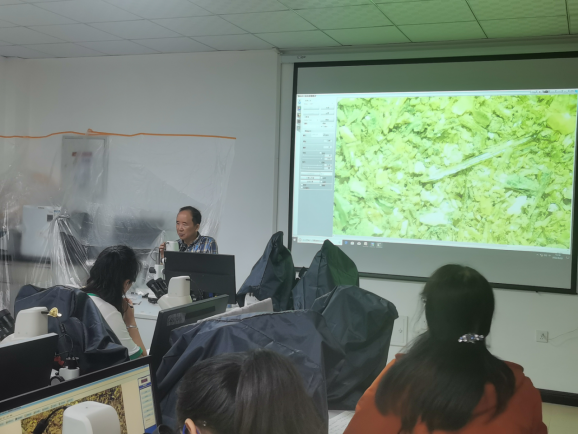 此次培训由国家饲料检测中心(武汉)前首席研究员杨海鹏老师主讲。在培训班上,杨老师分别为学员介绍了饲料原料品质对动物生长的影响、饲料原料常见的掺假手段以及显微镜检测饲料原料品质的方法。除接受培训之外,学员在休息期间还拿出了自己携带的饲料原料,针对工作中的疑难问题,与杨老师展开了深入交流。