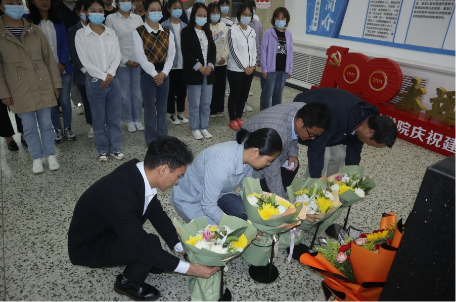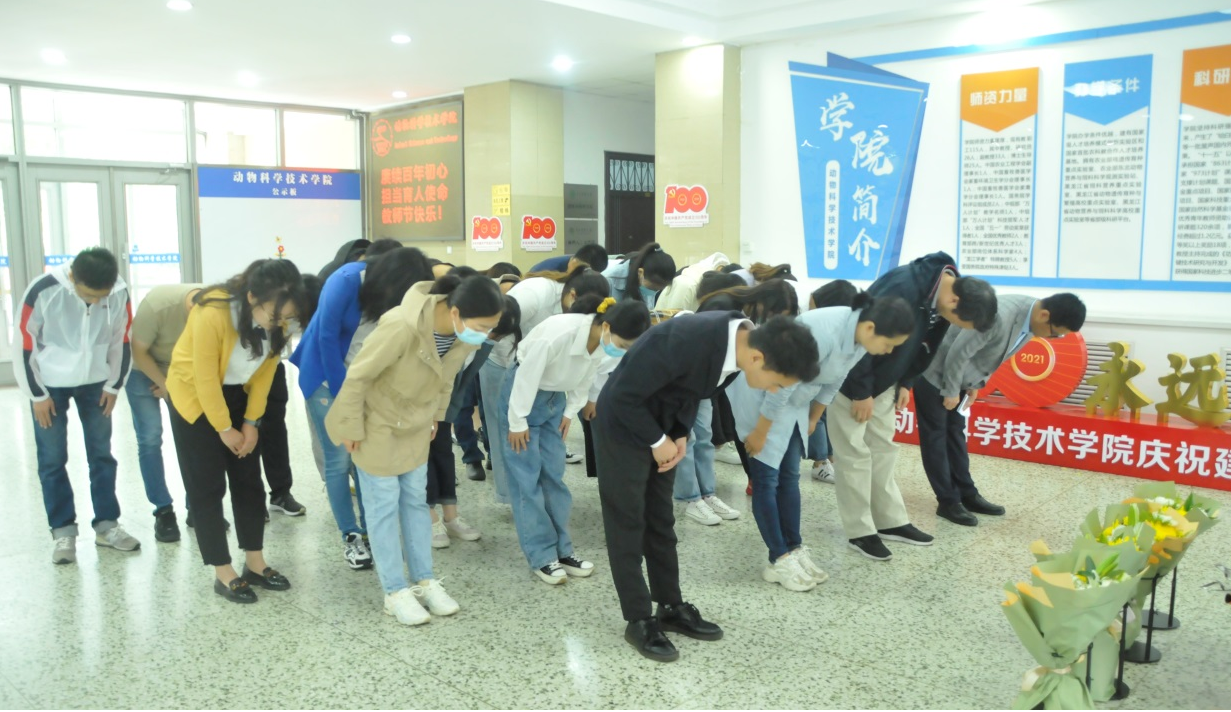 最后家禽课题组师生代表向“杨山先生铜像”敬献鲜花,在场师生纷纷表示,要传承和弘扬杨山先生遗志,潜心向学,追求卓越,全面发展,加快自身成长为课题组及家禽育种事业贡献自身力量。
