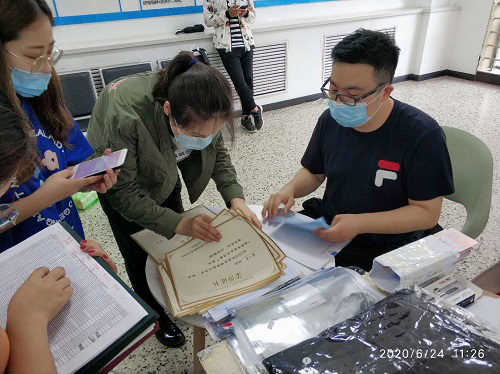 截止6月25日中午,教师志愿服务队共完成了对23名本科生、38名研究生的行李物品整理和邮寄工作,以及62名返校生的毕业证、学位证等发放工作。