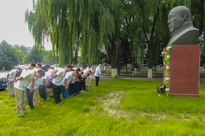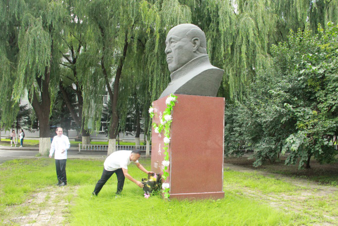 员工集合完毕后前往牧医楼前,缅怀畜牧界泰斗、动物营养奠基人许振英先生,在老先生雕像前的草地上献花、鞠躬、怀念老先生,铭记动科精神。