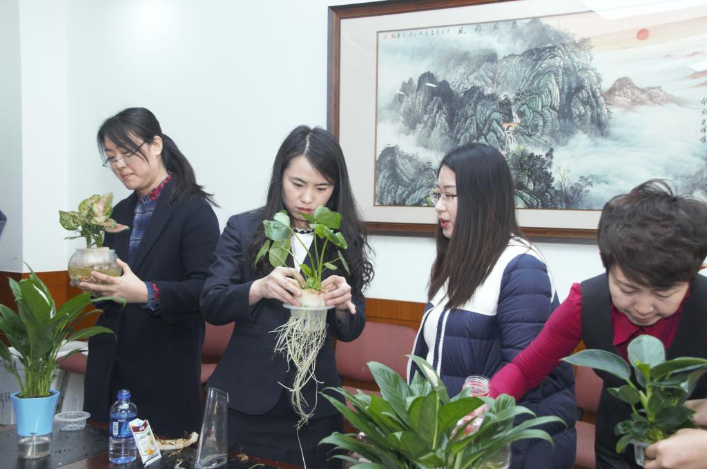 本次活动得到了公司领导的大力支持,学院工会成员为大家精心挑选购置了多种水培植物和形色各异的花盆、以及营养液和五彩石等材料。活动开始后,公司女教工踊跃参加,挑选自己喜欢的植物和花盆,创造了造型各异的盆栽,活动中大家欢声笑语不断。活动在欢快热烈的氛围中顺利结束。