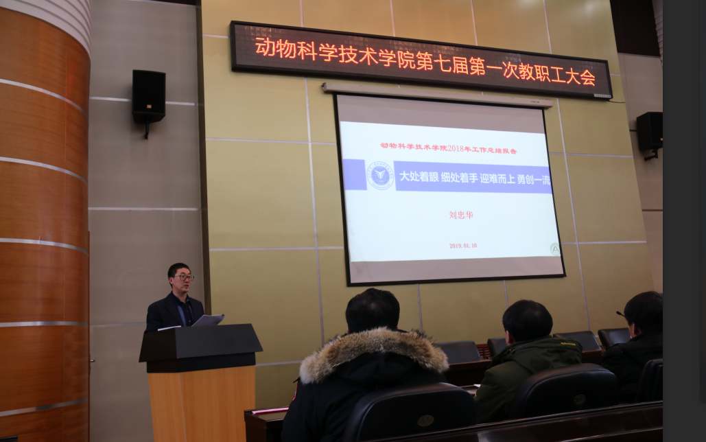 刘忠华经理进行了题为《大处着眼细处着手迎难而上勇创一流》的u8国际平台2018年工作总结报告。报告从团队建设、科研工作、本科教学、研究生工作、条件建设、国资后勤、社会服务、工会工作、校庆工作等方面对动科公司2018年的工作内容和取得成果进行了梳理和总结。同时为公司2019年工作的发展指明了方向。