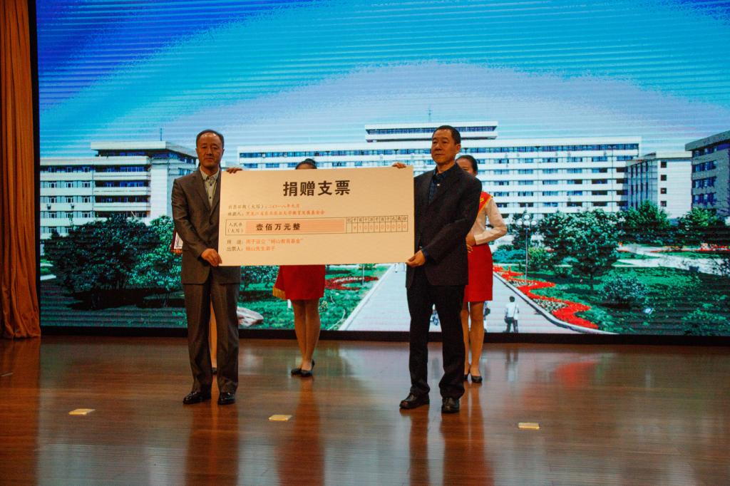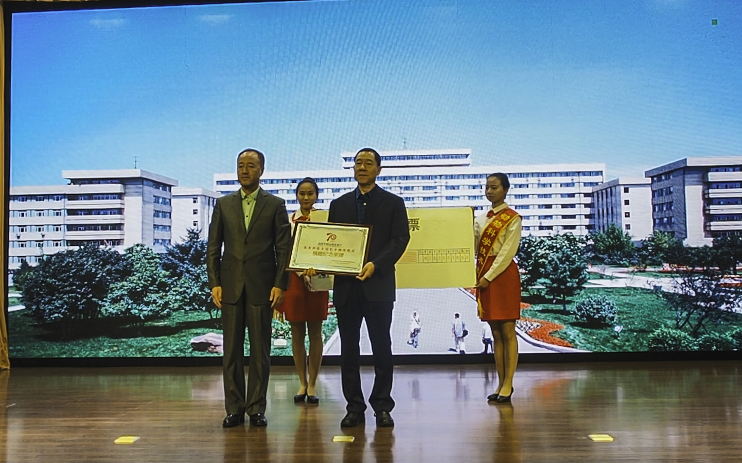 | 公司党委副书记马宏坤副接受杨山教育基金并向杨山教育基金筹集人颁发捐赠奖牌 |