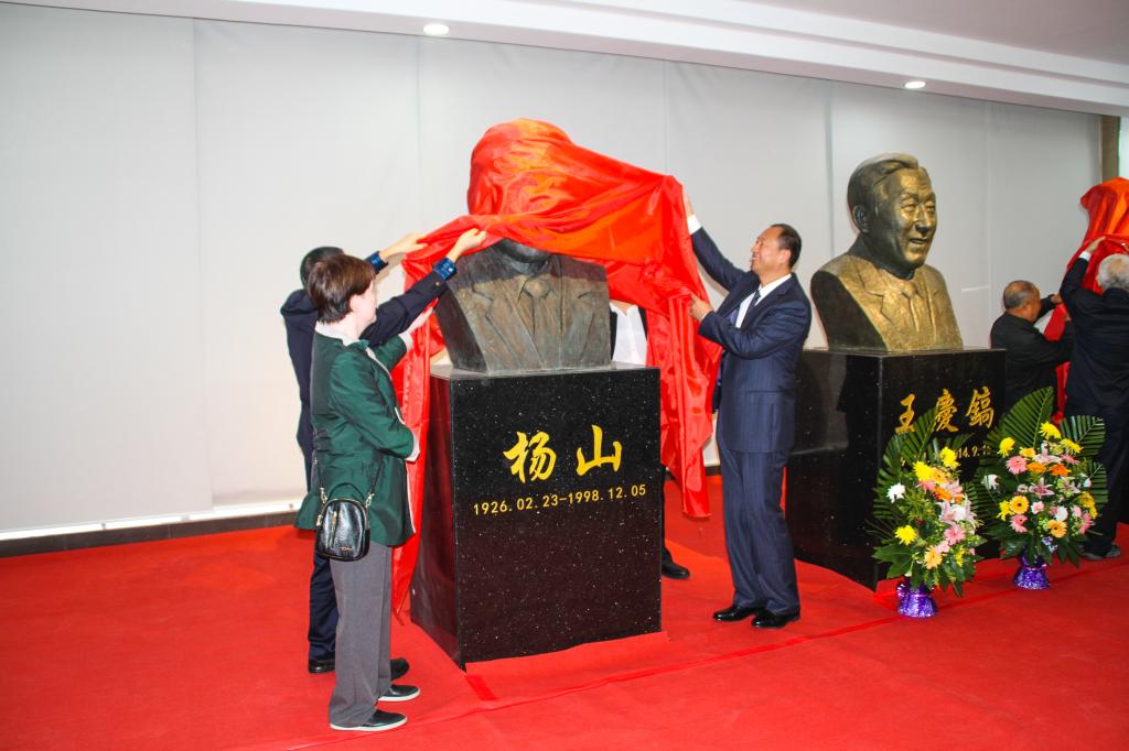 接着来到u8国际平台一楼大厅,参加盛志廉和杨山先生铜像揭幕仪式。几束鲜花,三座铜像,一行人,表达了家人和后辈们对盛志廉先生和杨山先生的思念与敬佩之情。