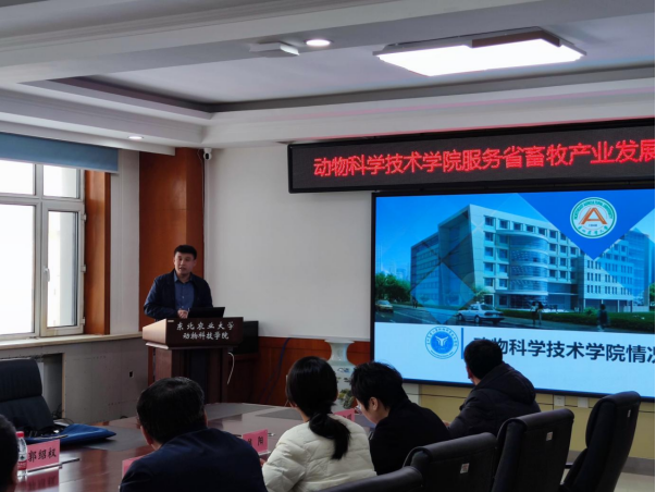 2月16日下午,黑龙江省农业农村厅一行五人到公司动科公司调研服务省畜牧产业发展工作,并在动科楼218会议室召开专题座谈会。黑龙江省农业农村厅一级巡视员孙文志、总畜牧兽医师张雨、畜牧处处长郭绍权、畜牧总站站长聂德宝、畜牧处副处长韩鹏出席座谈。公司动科公司党委书记徐光君、经理刘忠华、正处级组织员栾松、党委副书记焦阳、副经理姚玉昌、副经理徐文秀、健康养殖研究院执行副经理殷志明,以及教师代表石宝明教授、冷丽副教授、施雯副教授、狄生伟讲师、孙雨坤讲师,合作企业代表北京小龙潜行科技有限公司创始人鞠铁柱参会。刘忠华主持会议。