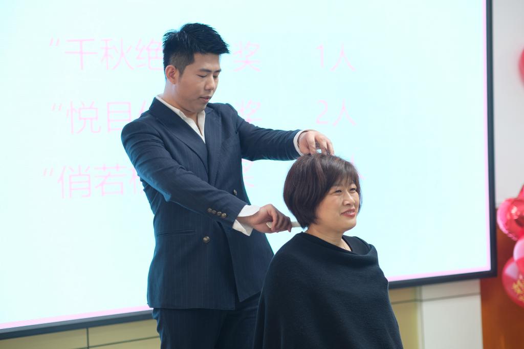 公司工会邀请哈尔滨市美发行业副会长,迦法造型沙龙总经理嘉兴为全院女教工做美妆美发分享,讲解了不同发质日常护理的方法、日常造型技巧等实用美妆美发知识,并为女教工们做现场护理体验。活动还特别设置了幸运抽奖环节,设“千秋绝色”、“悦目佳人”及“俏若桃花”三个奖项,为女教工们提供更多美妆美发的体验机会。