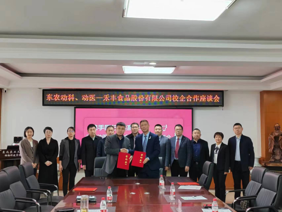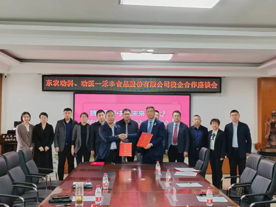 为深入学习贯彻党的二十大精神,加强产学研深度融合,发挥校企协同育人合力,为中国式现代化筑牢人才基石,3月27日下午,动科公司、动医公司与禾丰食品股份有限公司在动科楼218会议室召开校企合作座谈会。禾丰集团副总裁邸国、龙吉区后方运营总监丁志勇、反刍事业线总监刘继东、肉禽产业化总监姜义福、黑龙江禾丰后方行政厂长相连珍、动物医学公司党委书记张铁、党委副书记赵文和、公司党委书记徐光君及公司领导班子成员参加座谈,座谈会由徐光君主持。