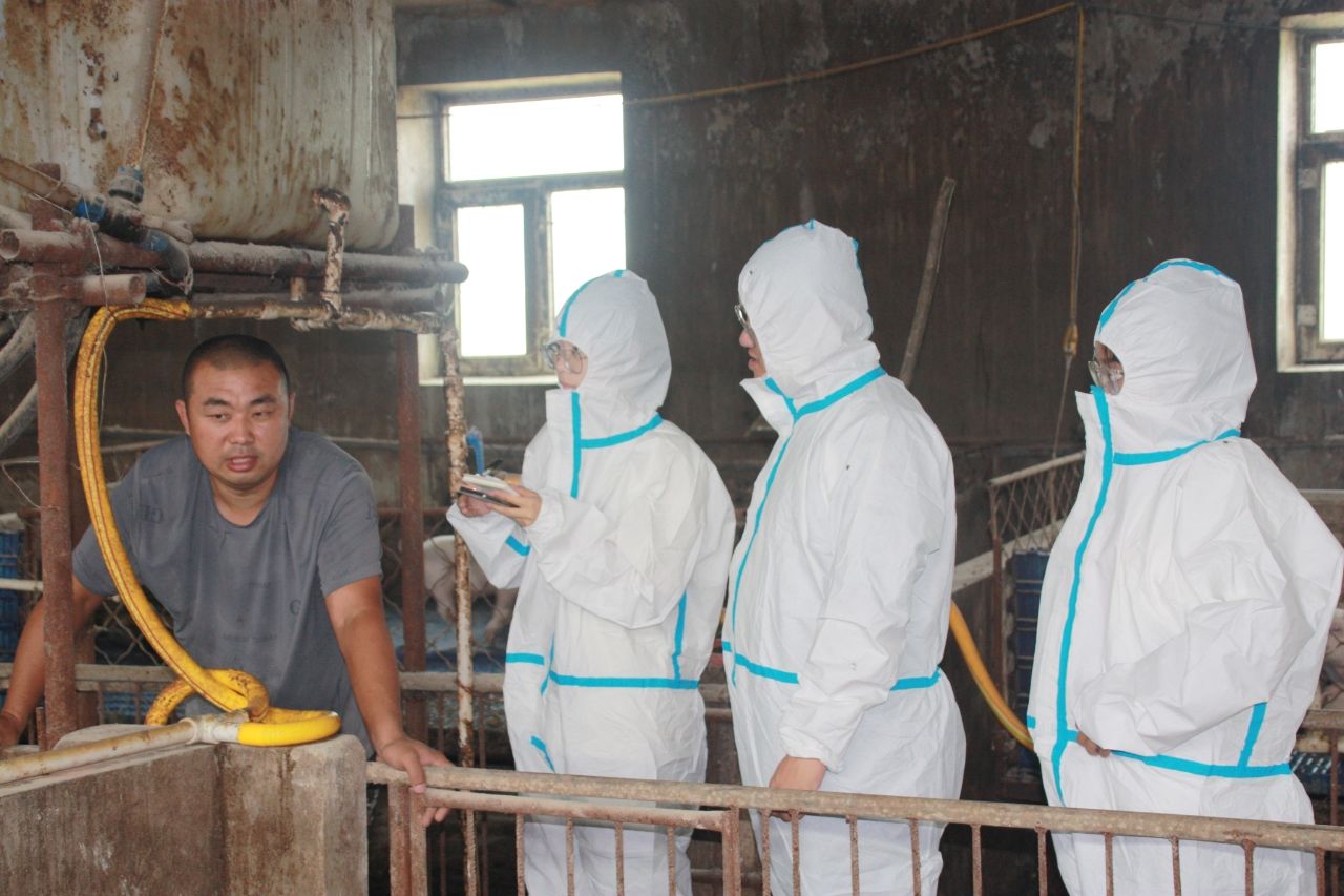 团队成员与驻村工作队及村干部进行交流,讨论了禁抗前后村民养殖情况以及村庄经济发展情况,了解到东发村养殖业是“政府+村集体”模式,政府的政策扶持与驻村干部扶贫相结合,并探讨了如何更好的扶贫助农以增长村民收益,让更多人生活富足的想法。短暂交流后,团队成员在工作队的带领下,一部分走进村民家,一部分去到大型养殖场,针对禁抗后村民对于养殖猪时的饲料添加剂问题、生病时如何处理、生活富足情况等进行走访调研。