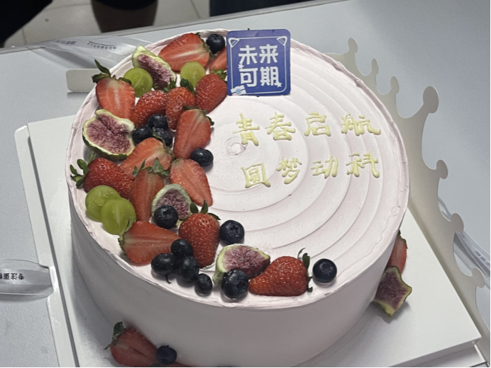 当天恰逢徐凡絮、成欣燃、张炜杰三位新生的生日,公司领导老师为他们精心准备了生日蛋糕和精美礼品,党委书记徐光君与新生共同切开蛋糕,在场的领导老师共同为他们齐唱生日歌,并送上生日祝福,现场气氛十分温馨。