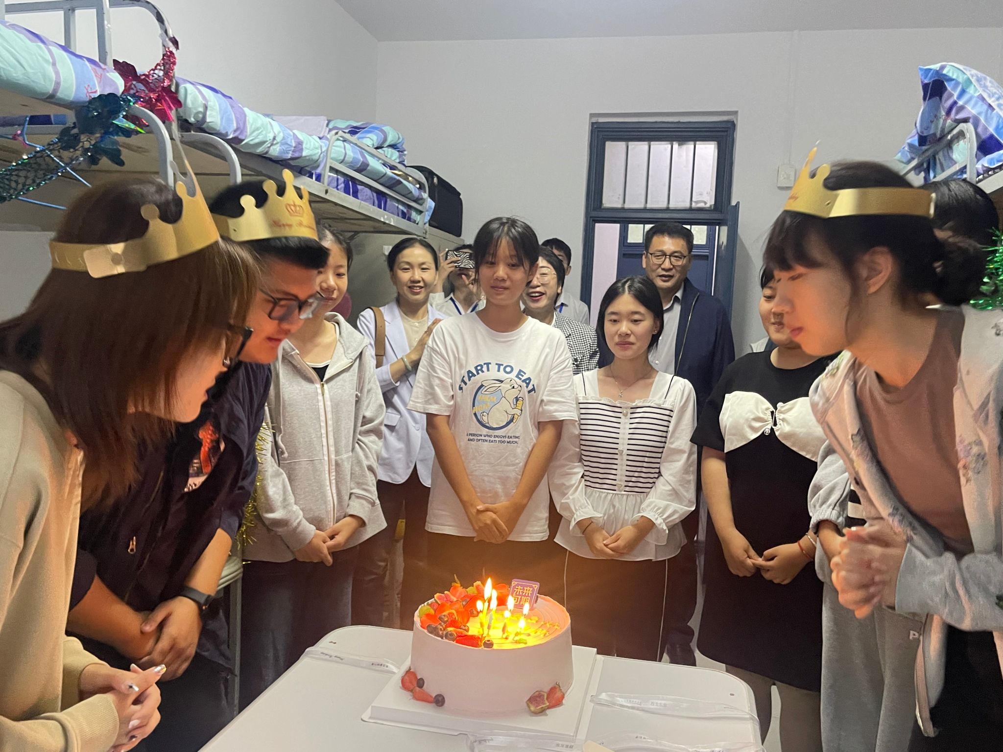 9月1日下午,公司党委书记徐光君、正处级组织员兼纪委书记栾松、党委副书记焦阳、副经理徐文秀及全体辅导员深入新生寝室,为新生送去暖心的关怀和问候。深入了解了2023级新生的生活状况、思想动态和住宿情况,加强新生宿舍管理,帮助新生更快适应老员工活,当天恰逢徐凡絮、成欣燃、张炜杰三位新生的生日,公司领导老师为他们精心准备了生日蛋糕和精美礼品,党委书记徐光君与新生共同切开蛋糕,在场的领导老师共同为他们齐唱生日歌,并送上生日祝福,现场气氛十分温馨。