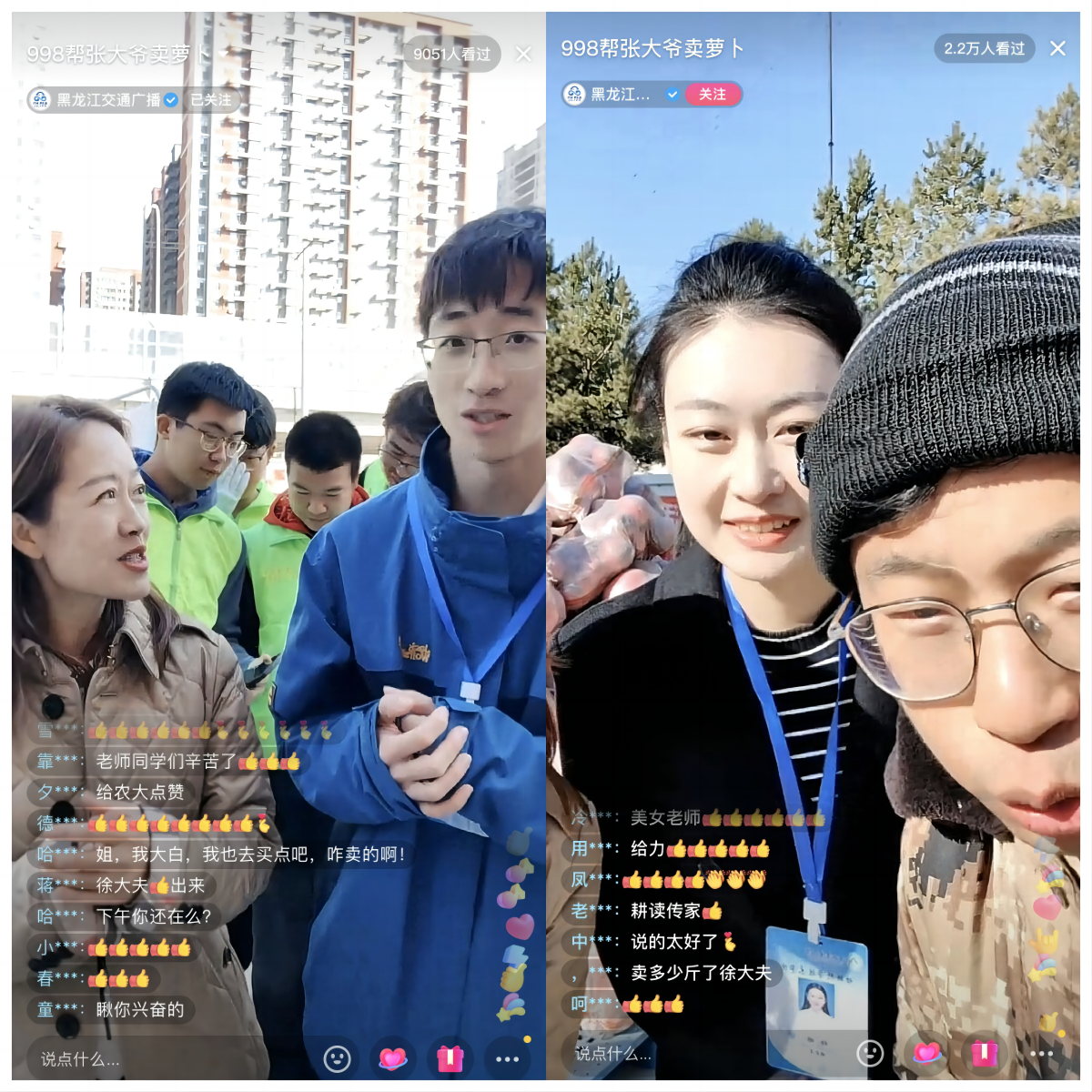 志愿者累计搬运、售卖萝卜超8万斤。黑龙江交通广播以电话连线、抖音直播等方式对活动进行实时报道,志愿者们纷纷在直播中为“爱心萝卜”做起了宣传,并向广大市民科普相关农业知识,社会各界人士纷纷为东农学子“点赞”“称好”。