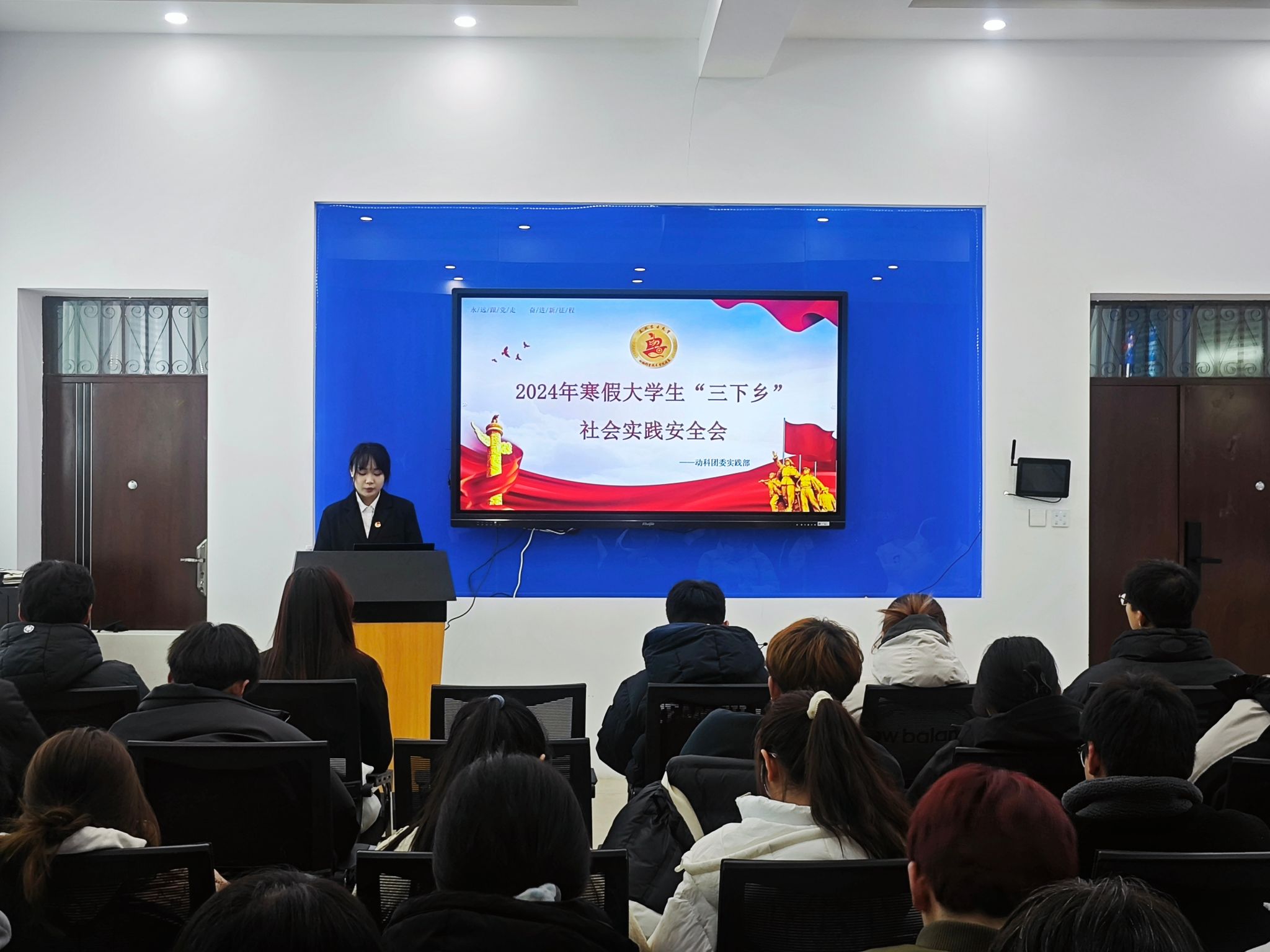 作为新时代老员工,社会实践引导我们走出校门,走向社会,积极地了解社会,让我们明白社会是学习和受教育的大课堂,在这片广阔的天地里,我们的人生价值能得到完美的体现。为保证员工健康安全,在实践活动开展前做好安全预案,u8国际平台于2023 年12月28日在动科楼113举办了2024年寒假老员工“三下乡”社会实践安全培训大会,动科公司团委副书记宗小暄为同学们讲解实践过程中的安全事项,加强同学们的安全防护意识。