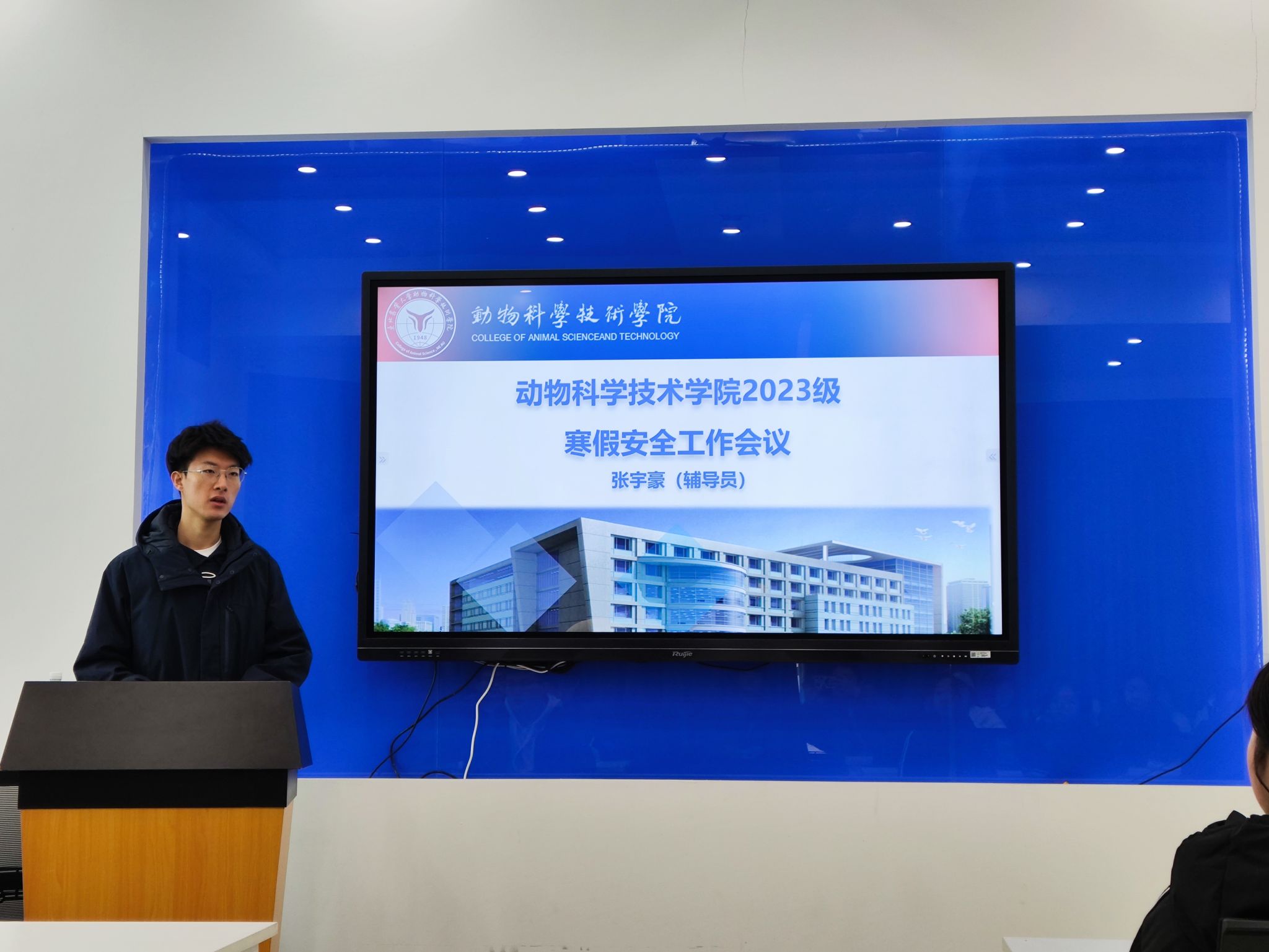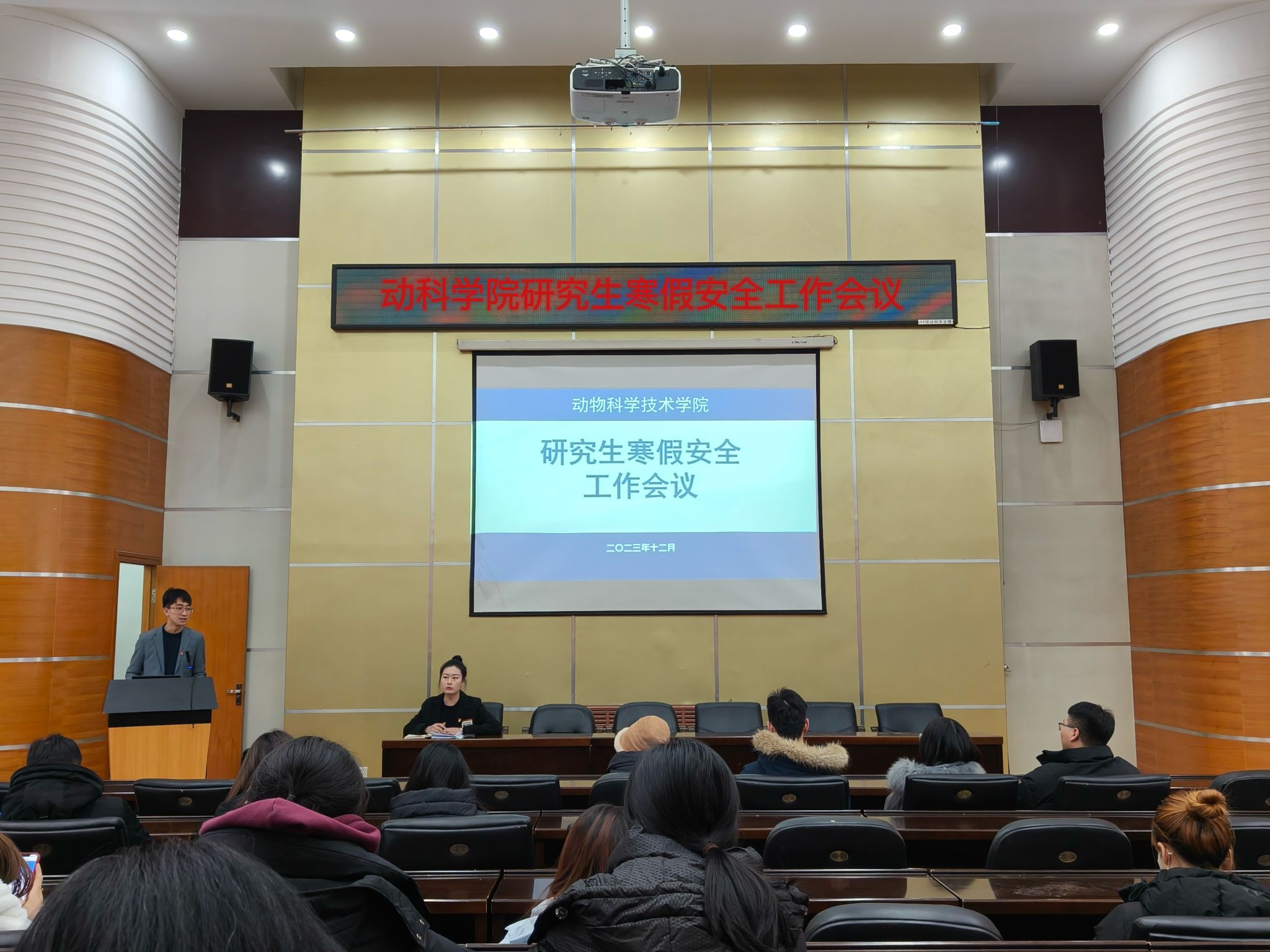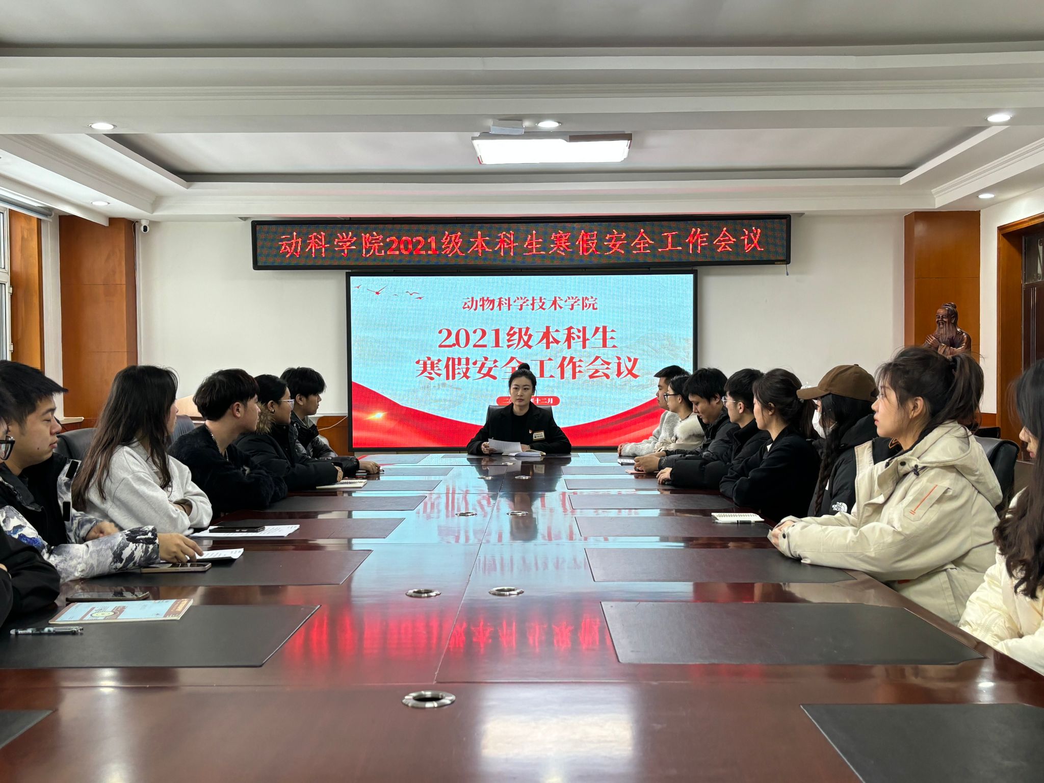 会上,辅导员老师们传达了公司寒假安全工作会议精神,向员工们介绍了假期安全相关问题,并针对不同年级的员工提出了相应的建议和注意事项。对消防、网络、交通及实习实践等各方面的安全隐患进行了警示教育,并针对留校员工在校期间的实验室安全和寝室管理进行了详细讲解,提高全体员工的安全意识和自我保护能力。同时,对假期有科研任务留校的同学提出了明确学习目标,引导员工配合研究生导师学业指导,高效完成科研、论文任务。