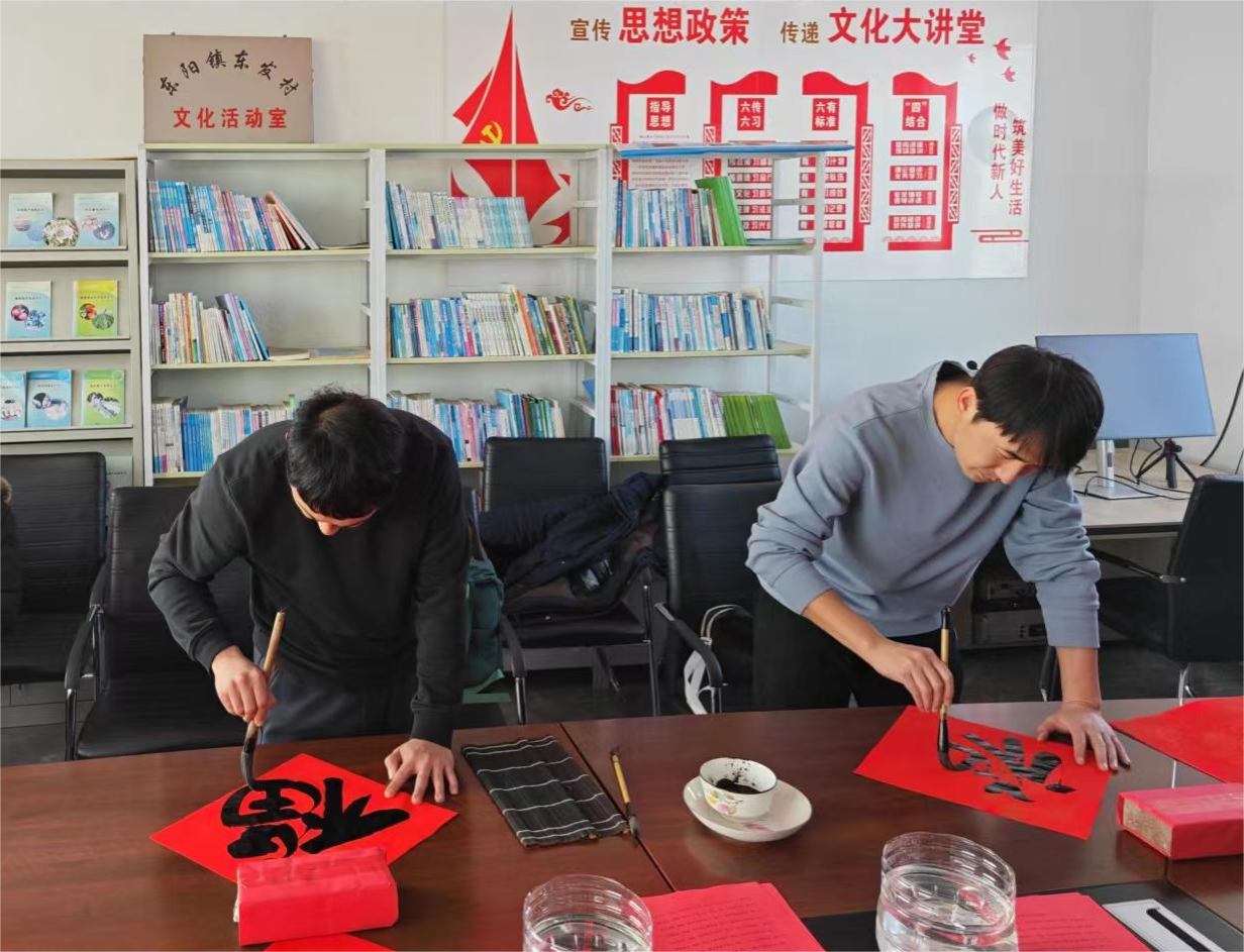为庆祝农历新年即将到来,丰富东发村人民群众的精神文化生活,更好地促进乡村文化振兴,在村委会办公室开展新年送“福”下乡活动,受邀而来的齐齐齐哈尔市两位书法家芦欢、李文玉为村民书写春联和“福”字并现场为村民发放,一副对联一张福字,书写了美好憧憬,为村民送上新春的美好祝福。