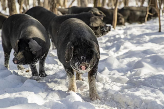 u8国际平台黄贺教授团队多年从事动物遗传育种与繁殖的科学研究和社会服务工作,积累了丰富的经验,取得了丰硕的成果。该团队与东极生态畜牧发展(抚远市)有限公司开展长期的技术合作,将现代化的生态养猪理念、先进的种猪培育技术及精细化的饲养管理技术引入企业,采用先进的物联网技术、可追溯系统技术、全智能信息化管理技术,尤其重视全方位科学数据的采集和分析,依靠科技力量生态养殖黑猪,饲喂有机原料,严格的生物安全措施,利用中草药提高猪免疫力,实现猪群无免无抗饲养,通过营养调控和养殖环境调控等手段产出安全、营养和风味独特的高端有机黑猪肉(图1)。2023年初,该团队与公司启动了东极雪·黑豚联合培育项目,并被黑龙江省科技厅列入黑龙江省重点研发项目。目前项目进展顺利,并取得了阶段性的成果。