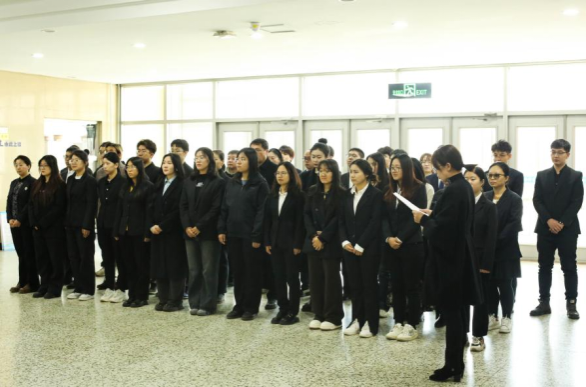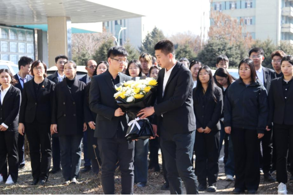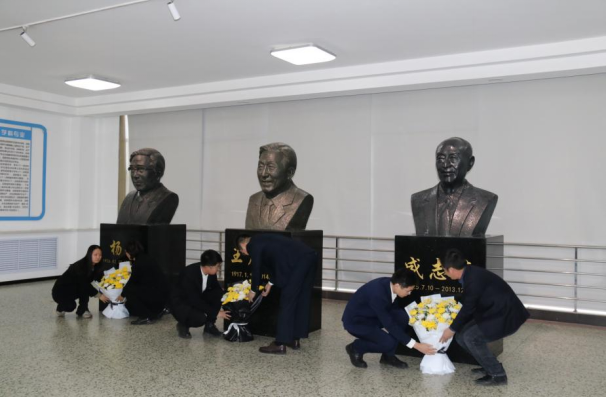 在聆听先生事迹后,师生代表向四位先生铜像敬献鲜花,全体师生集体默哀缅怀,寄托哀思。