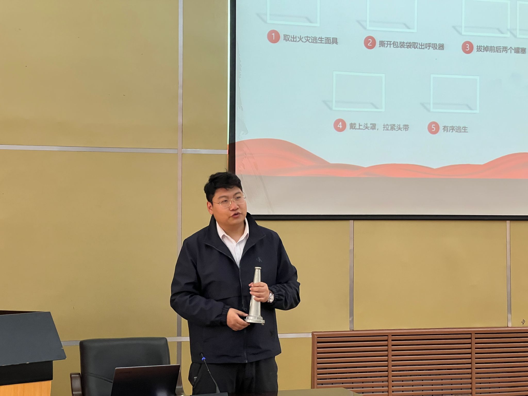 会上,刘浩东以《预防为主 生命至上》为题,通过视频展示和现场实物演练,重点讲解了消防基本知识、消防案例、消防器材使用方法、常见火灾预防等四个方面,号召同学们认真学习消防安全知识,筑牢安全意识,掌握消防安全技能,自觉遵守消防安全规定,积极预防火灾的发生,时刻守好安全底线。