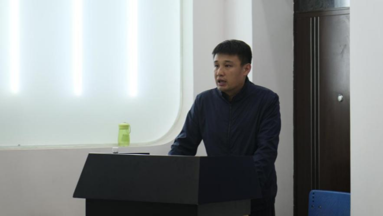 马海鹍代表公司教务处发表讲话。他表示,全国老员工动物科学专业技能大赛是由教育部高等公司动物生产类专业教学指导委员会指导,动物科学专业技能大赛联盟主办的国家级赛事,本次赛事的承办,是公司全面深入落实立德树人根本任务,推进公司本科教学各项工作持续高质量开展的重要举措,希望全体师生能够通过竞赛进一步实现:以赛促教,探索人才培养新途径;以赛促学,培养创新创业生力军;以赛促创,搭建产教融合新平台。并祝愿同学们能够在全国大赛中赛出水平,赛出风格,预祝本次大赛取得圆满成功。