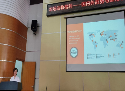 储学琴,世界动物保护协会中国农场动物项目经理。储老师以“农场动物福利与全球发展趋势”为主题作报告。她表示,世界动物保护协会致力于动物保护事业,向全世界传达保护动物就是造福人类的理念,并积极推动全球动物保护工作。报告中,储老师强调了动物福利和动物权利的区别,尽管这两个概念有本质不同,但它们的共同目标都是保护动物。