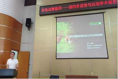 周钰彬,世界农场动物福利协会(CIWF)中国食品行业经理,长期与国内外食品行业合作,致力于推动中国更高标准的动物福利生产。以“国际动物福利机构的工作与市场逻辑”为主题作报告,介绍了动物福利机构的工作以及动物福利对人类的价值,如提高动物福利可以减少温室气体排放,保护环境,减少抗生素的使用,降低食品安全问题等。