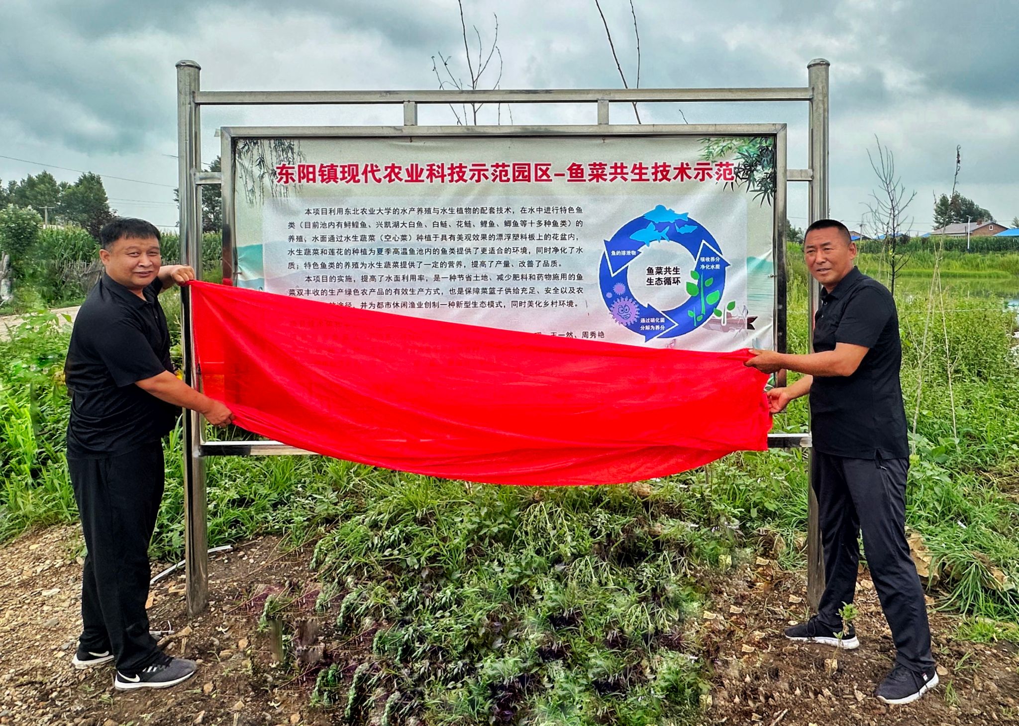 随后,张友、杨景慧、于洪海、孔德友共同为“东阳镇现代农业科技示范园区-水稻示范区”和“东阳镇现代农业科技示范园区-鱼菜共生技术示范区”揭牌,标志着两个示范区正式启动。