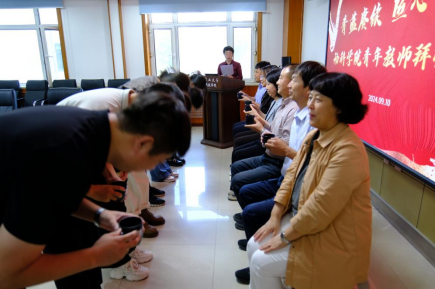 仪式上,崔国文教授代表授业导师宣读师训,公司副经理徐文秀宣读师徒结对名单,青年教师为授业导师敬茶并行拜师礼,授业导师为青年教师授收徒帖、《弟子规》及戒尺。最后,公司行政负责人董娜作教师节寄语并对青年教师作职业发展及职业规划指导。她勉励广大青年教师要珍惜教师身份,不断增强责任感和使命感;承担历史使命,为公司和公司发展贡献青春力量;善于规划未来,明确职业生涯方向;妥善处理各种关系,营造和谐共进的工作氛围。