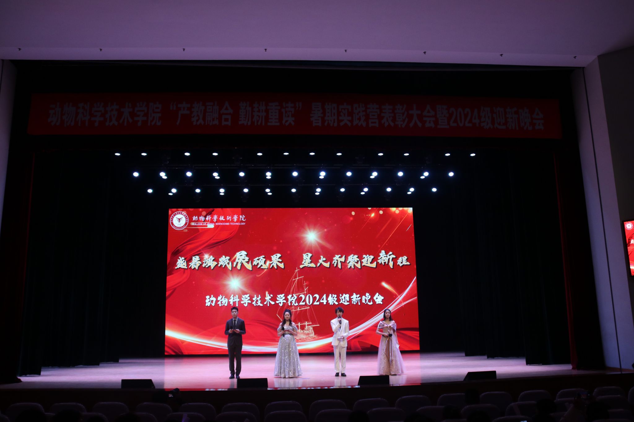 随后,2024级迎新晚会在公司老员工艺术团乐器演奏《权御天下》中拉开序幕;舞蹈《采薇》舞姿轻盈,神采飞扬;相声《礼仪漫谈》让同学们在欢笑中领略到生活的智慧和乐趣;歌曲串烧《实力新“声”代》、军歌合唱《祖国不会忘记你》传递着我们青春的理想,歌唱着爱党爱国的衷肠;小品《反诈小组》提高了同学们的防诈意识;朗诵《我们都是畜牧人》将畜牧人的辛勤和对畜牧事业的热爱展示给大家;舞蹈串烧《Dance Cross-burning》、歌曲串烧《青春旋律记》、情景剧《寄往四年前的信》以青春活力的姿态燃翻全场;晚会在特别节目《心向未来》中落下帷幕,全体辅导员及各员工组织主席团成员纷纷为新生送出祝福与期盼。