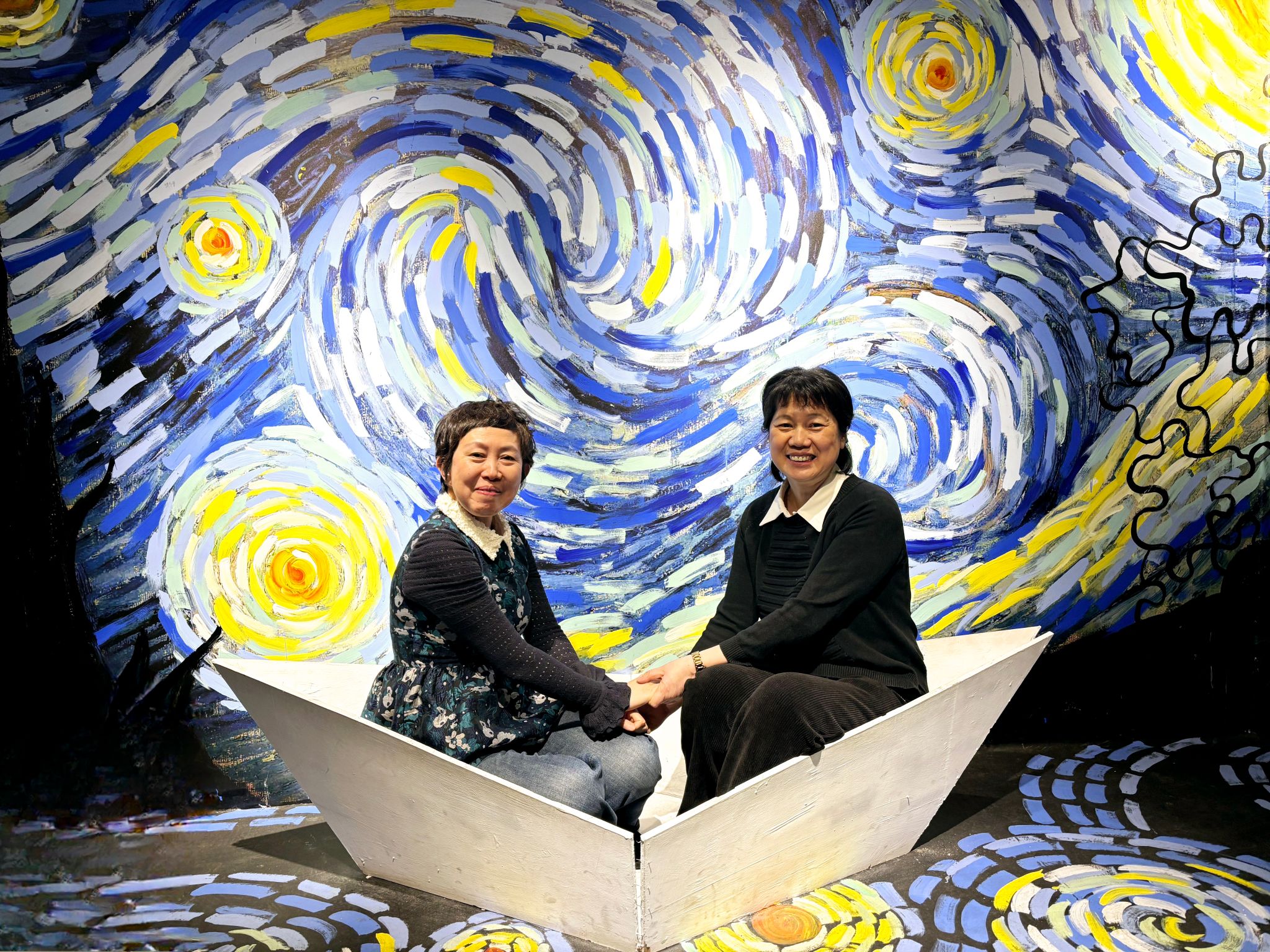 展馆内以梵高经典画作为灵感,结合现代光影科技与3D视觉设计,打造出《星月夜》《向日葵》等主题场景,让参观者仿佛步入画中世界。公司女教职工在工作人员的引导下开启了一场别具一格的艺术之旅,用镜头记录光影交织的梦幻瞬间,在油画场景与科技元素的交融中感受艺术魅力。