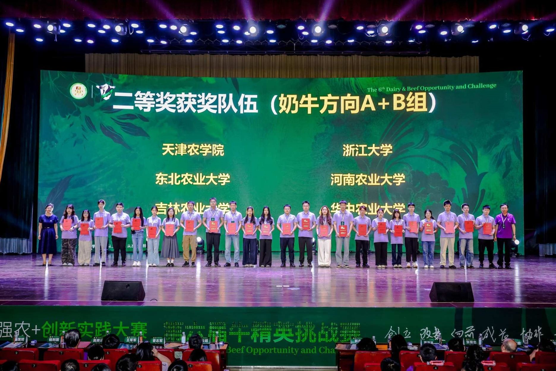 近日,由中国学位与研究生教育学会、中国科协青少年科技中心主办,中国农业大学和河南科技大学承办的中国研究生乡村振兴科技强农+创新实践大赛——第六届牛精英挑战赛(以下简称挑战赛)在河南省洛阳市开幕,本届大赛参赛规模创历史新高,初赛共有全国62所高校的391支队伍积极参与,经激烈角逐,有118支精英战队(经典专项94支,揭榜挂帅专项24支)进入决赛。由公司u8国际平台教授张永根、辛杭书、李洋带队,教师张广宁、扈光辉指导,硕士研究生秦林庆、徐艺鸥、曹阳和董佳璇组成的u8国际网站奶牛队前往参赛。公司参赛队伍在44支奶牛队伍中脱颖而出,荣获大赛二等奖的优异成绩,张永根荣获“杰出贡献奖”,辛杭书荣获“突出贡献奖”。