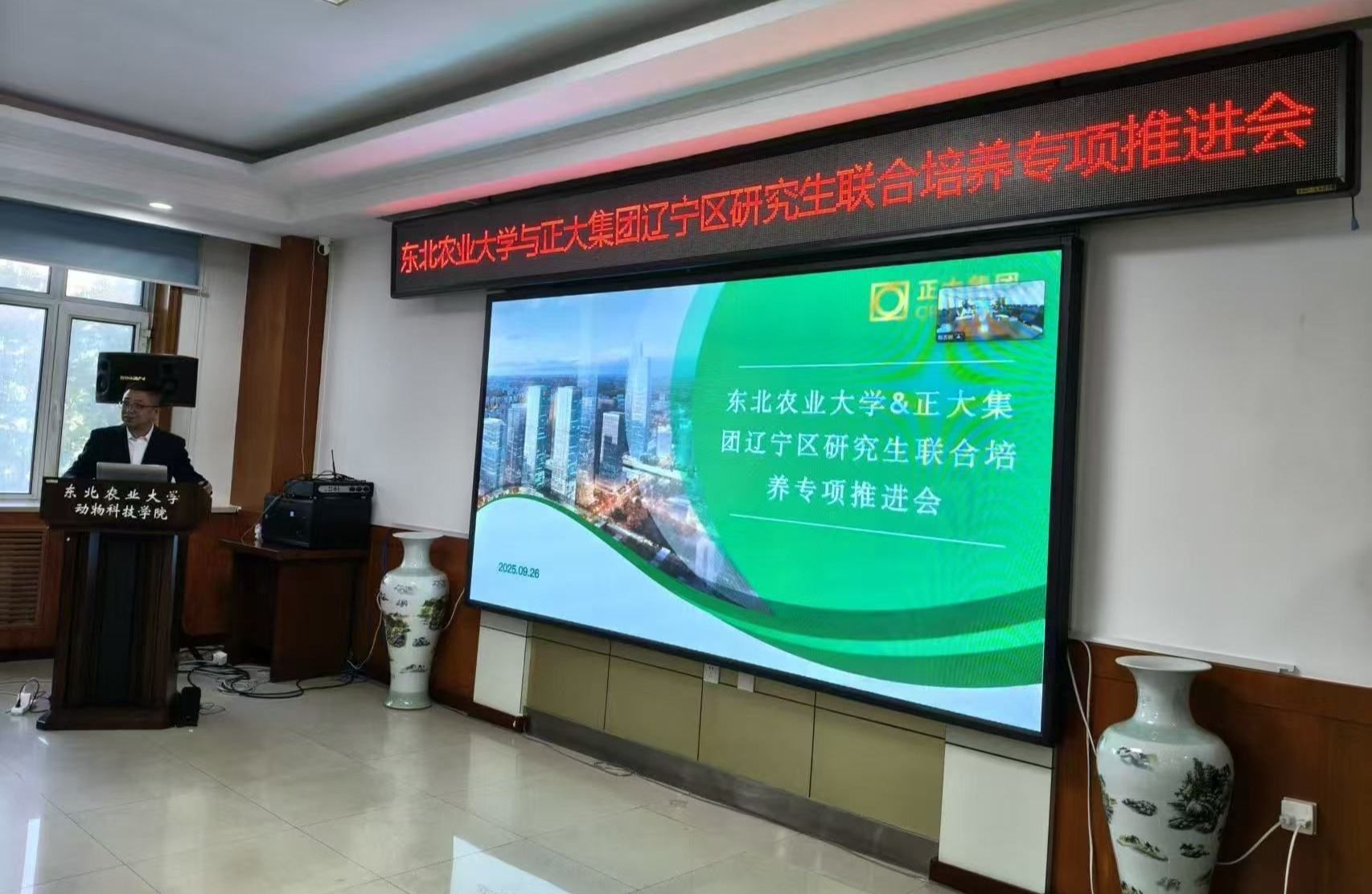 为深化校企合作,创新公司产品模式,9月26日下午,由公司u8国际平台牵头举办,动物医学公司、食品公司、经济管理公司共同参与,与正大集团辽宁区联合开展的“深化产教融合·共促培养实效”研究生联合培养专项推进会在动科楼218召开。u8国际平台经理董娜、副经理张慧,动医公司、经管公司、食品公司及动科公司的部分教师代表参加会议,正大集团中国区副董事长兼辽宁区总裁陈强、总裁助理孙建三等企业高管通过线上线下方式出席会议。会议由董娜主持。