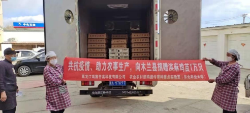 为更好地发挥农业大学服务地方经济优势,以科技成果惠及农村、惠及农民,助力龙江乡村振兴战略,降低新冠疫情对农事生产带来的影响。近日,由公司党委牵头,联合公司农业农村部鸡遗传育种重点实验室及黑龙江瑞赛齐高科技有限公司共同开展了以“战疫助农、使命担当”为主题的向木兰县、延寿县捐赠滨麻鸡鸡苗的活动。